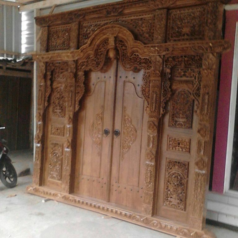 Gebyok dengan lebar 3,5 meter. Dibuat dengan kayu jati dan kualitas ukiran yang tak diragukan lagi. Ukiran dibuat oleh pengrajin yang berpengalaman bertahun – tahun. Gebyok / gapura gebyok 2 daun pintu untuk rumah yang lebih elegan. Bisa untuk guest house atau kantor. Harga mulai Rp.14.000.000.00.