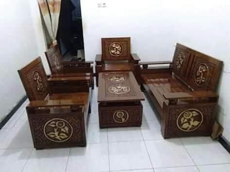Kursi ruang tamu bahan jati berkualitas dengan hiasan ukir. Kursi berkualitas yang dibuat dengan gaya klasik cocok untuk rumah pribadi dan guest house.